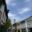 As the pathway opens toward the park, a row of blooming trees suddenly comes into view.
