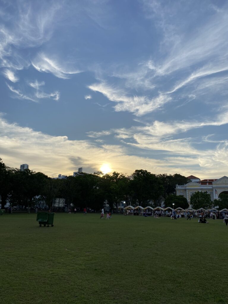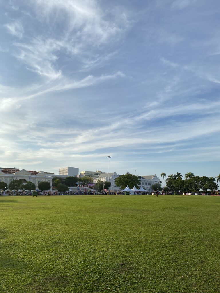 Penang’s skies often have a character of their own — wide, open, and textured with gentle clouds that change shape as the day unfolds. Beneath that vast sky lies the wide green lawn of the Esplanade (Chap Goh Mei Penang 2026).