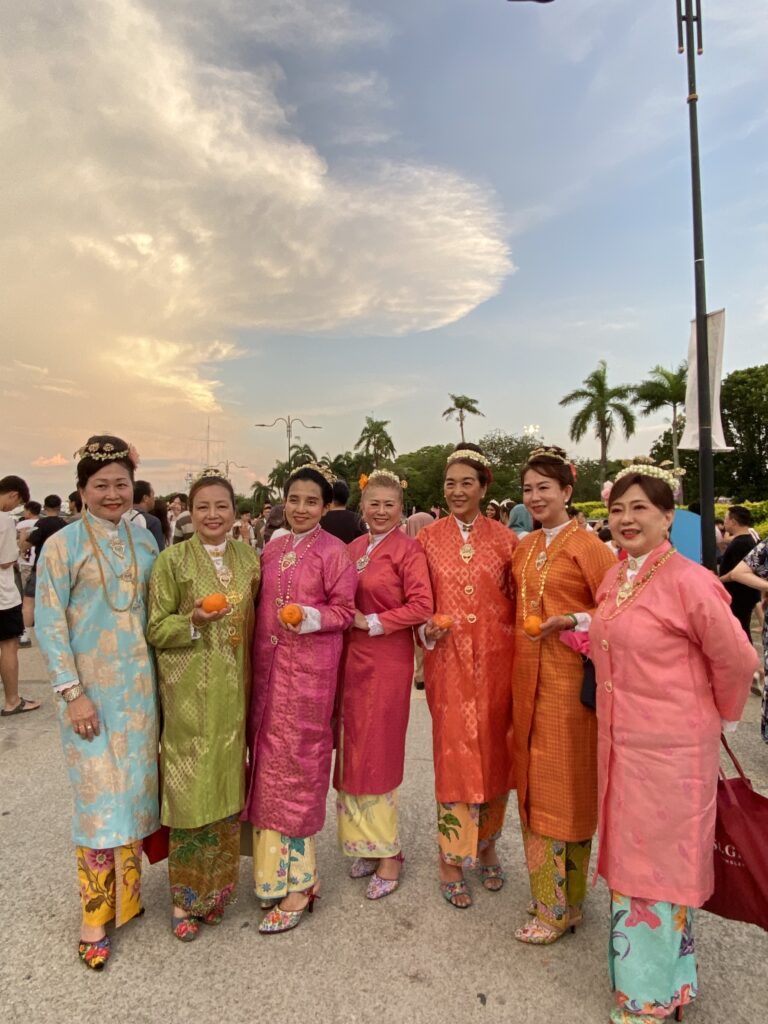 They were dressed in traditional Nyonya attire, their kebayas glowing with vibrant colours — shades of turquoise, green, pink, and orange. The delicate embroidery on the fabric reflected the intricate beauty of Peranakan culture.