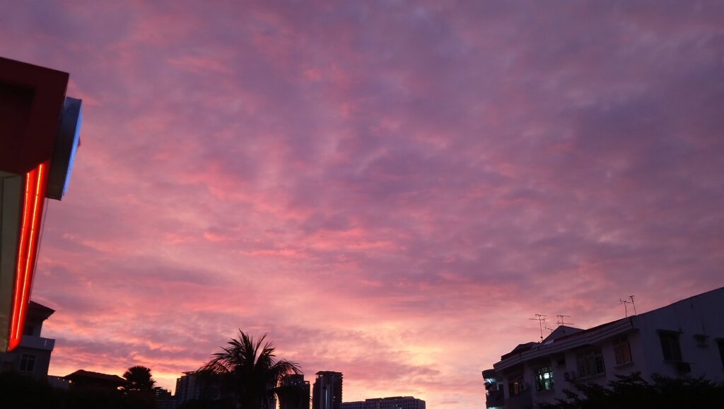 Cloud patterns in Penang are most dramatic during transition hours — early morning and late afternoon. These times bring shifting light and layered colors. During the southwest monsoon (May–October), skies tend to build heavy formations in the afternoon, while the northeast monsoon (November–March) often delivers high, wispy clouds and clearer evenings.