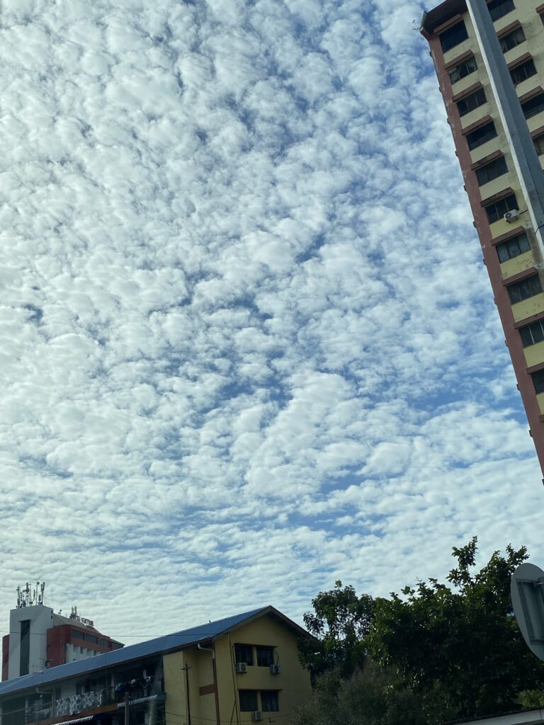 There’s something magical about the sky in Penang. It’s like someone gently pulled apart soft cotton balls and scattered them across an endless stretch of blue. The clouds drift in this lazy, wavy rhythm, like they’re in no rush to be anywhere — just floating, just being. The whole scene feels calm, almost too perfect to be real, like stepping into a quiet dream painted by the wind and light.