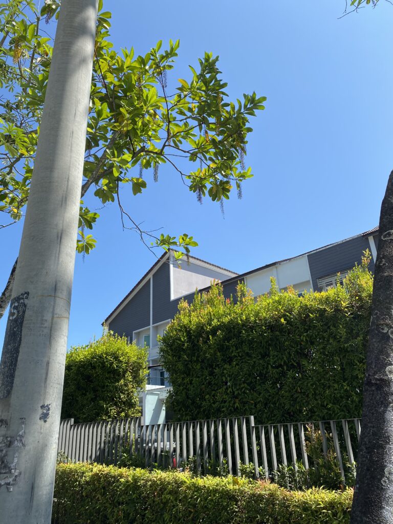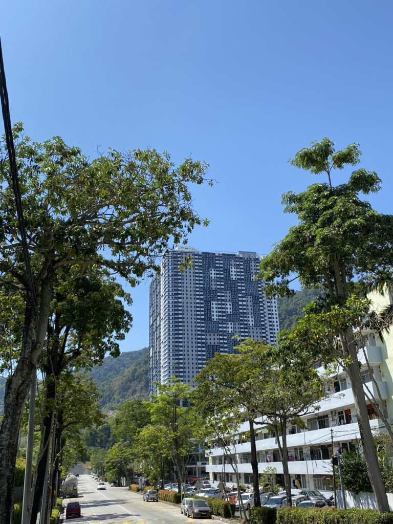 Just beyond the greenery, the neighbourhood reveals a mix of residential typologies that reflect Penang’s evolving urban fabric. Quiet streets are lined with modern landed homes, many with clean lines, soft grey and white façades, balconies and generous windows that allow light and airflow.