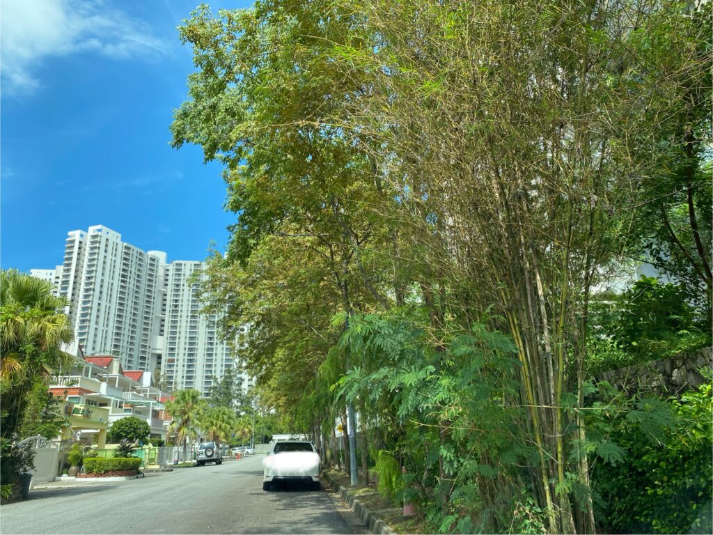 You’ll often see rain trees, bamboo, angsana trees, and sea almond trees. These species grow well in Penang’s tropical climate and provide natural shade along many neighbourhoods and suburban roads.