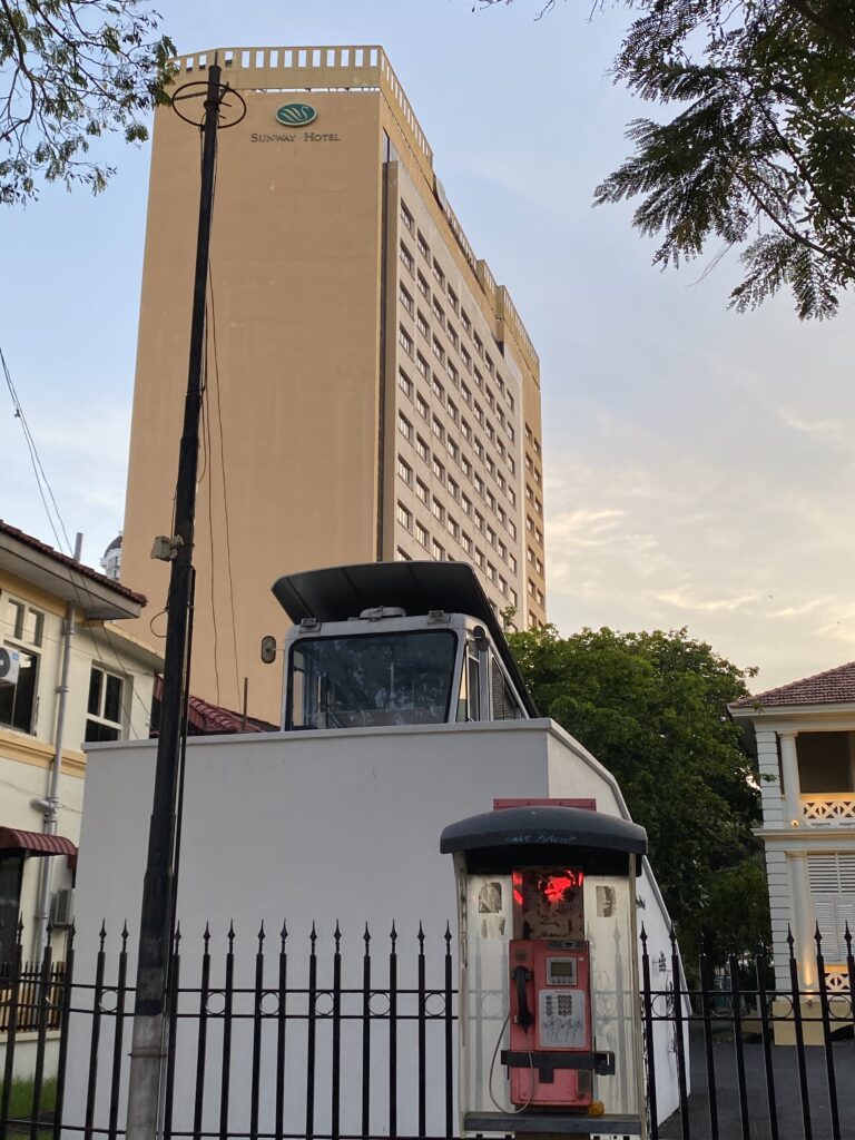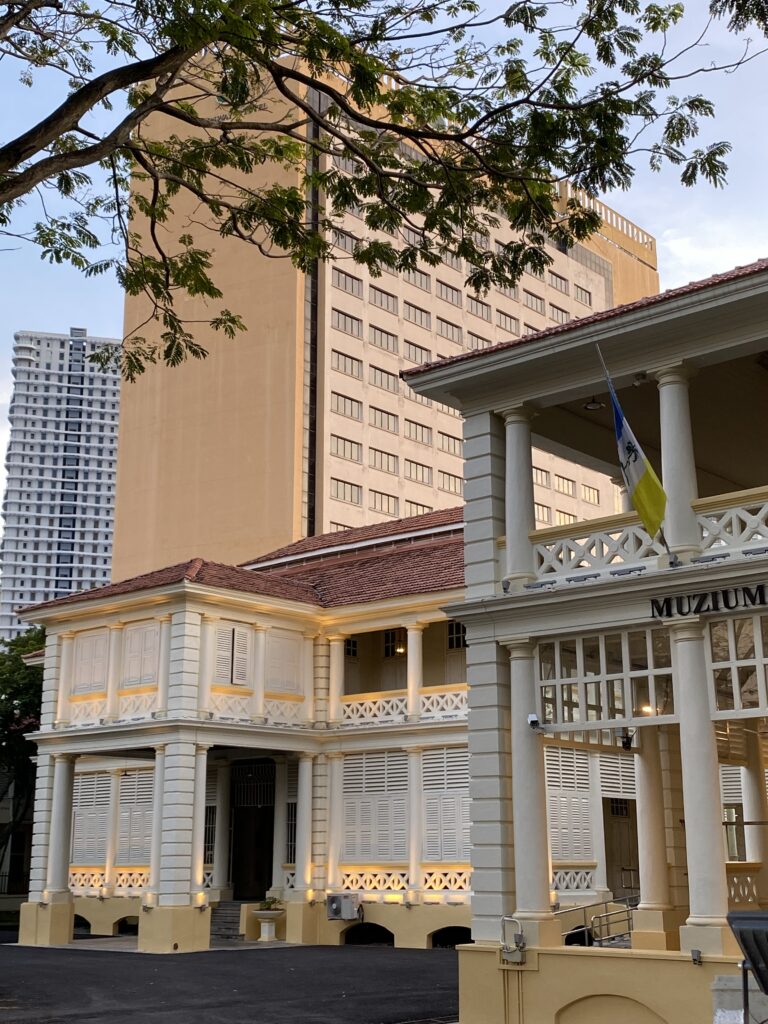 Jalan Macalister itself has a rhythm all its own. It is not loud, yet never empty—an urban pause between heritage and modern life. Just behind the museum, the long-established Sunway Hotel rises unmistakably into view, its warm orange tones echoing the museum’s palette, forming a subtle visual conversation between past and present.